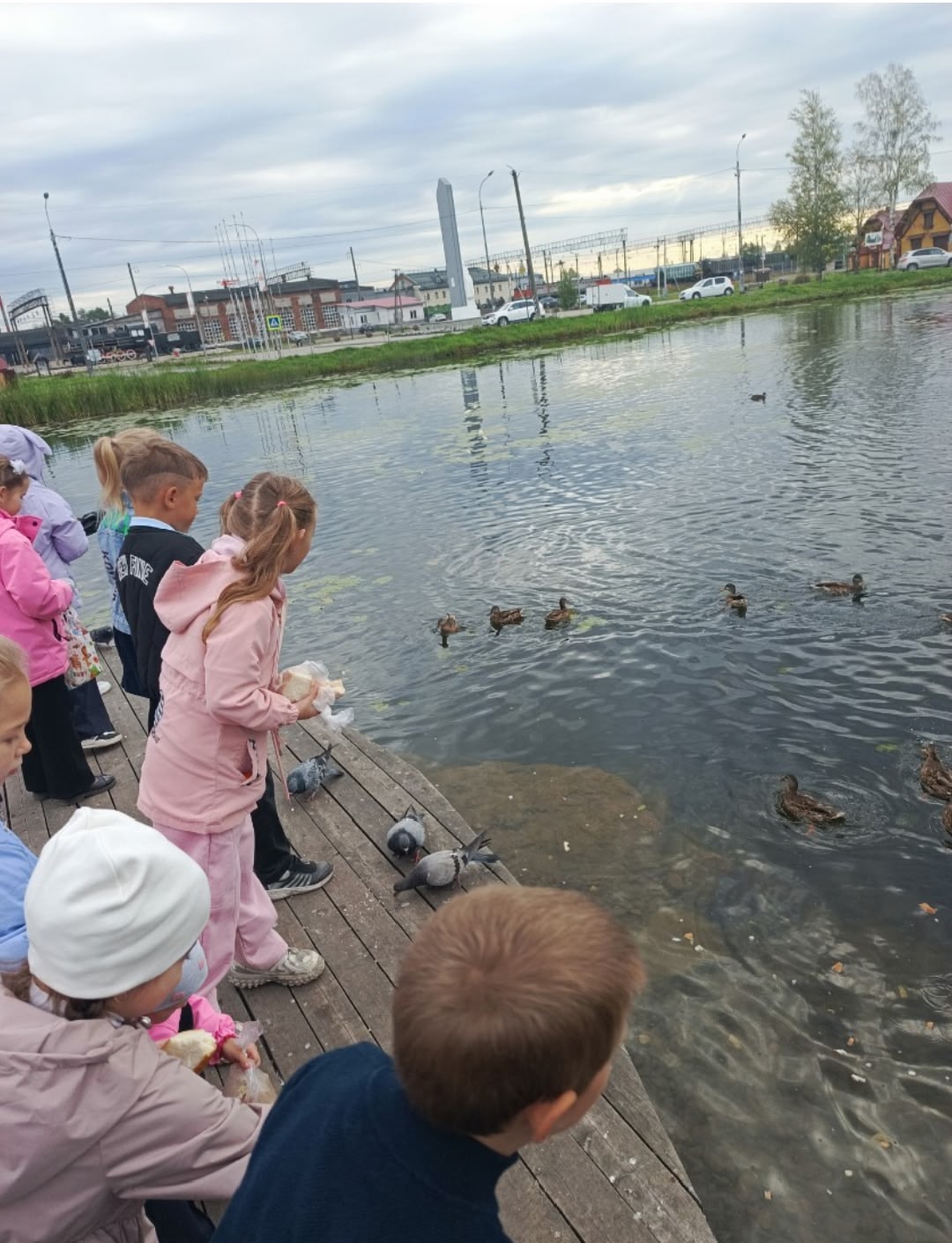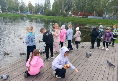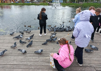12 сентября первоклассники нашей школы под руководством Соколовой Л.В. сходили на пруд, покормили уточек и голубей. Так ребята приняли участие в акции "Покормите птиц осенью". Узнали, кто такие утки-кряквы, кто из них селезень, чем питаются и куда улетают эти птицы. Обсудили правила поведения у водоема и правила нахождения в общественном месте, одной из главных достопримечательностей нашего города.
