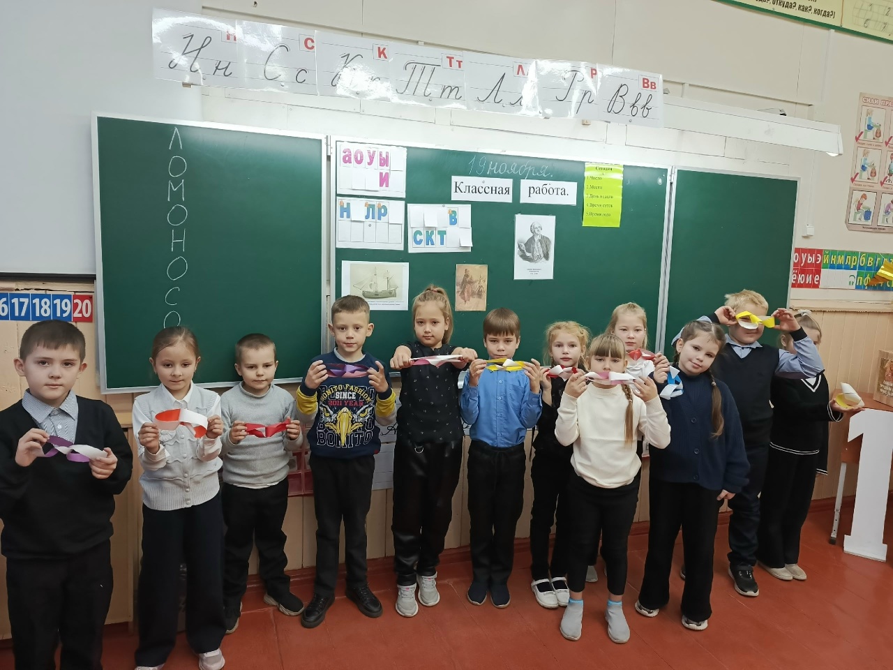 В начальной школе также прошли занятия, посвящённые великому русскому учёному Михаилу Васильевичу Ломоносову. В ходе занятий ребята познакомились с биографией Михаила Васильевича, а также провели небольшие физические и химические эксперименты, в ходе которых определяли крахмал в картофеле и бумаге, писали лимонным соком и мастерили волшебные кольца из цветной бумаги.