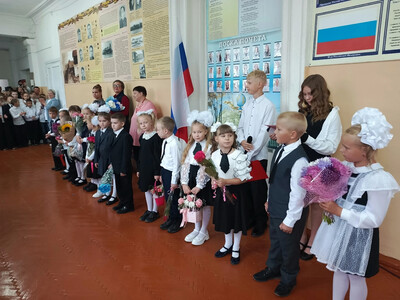Особое внимание привлекли первоклассники и девятиклассники, читающие стихи, и, конечно, момент, когда право подать первый звонок 2025-2026 учебного года было предоставлено ученику 9 класса Дмитрию Забалдину и самой маленькой ученице 1 класса Дарине Гадировой.