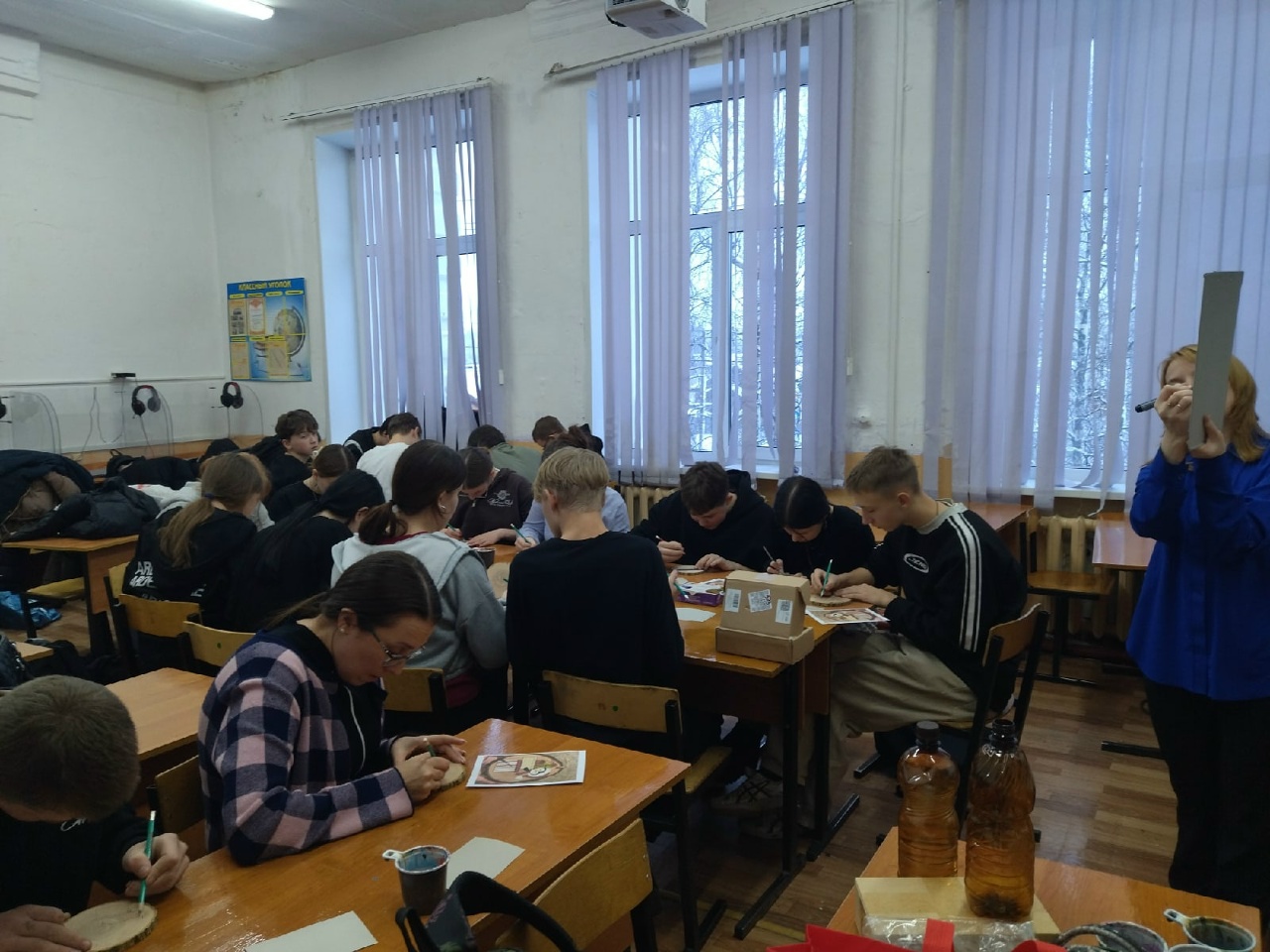Специалисты СП Детская библиотека провели творческий мастер-класс для обучающихся 9 класса. Ребята познакомились с особенностями рисования на деревянных поверхностях, узнали о технике и способах нанесения красок, а затем с увлечением приступили созданию шедевра Под руководством библиотекаря каждый подросток смог воплотить свой творческий замысел и расписать дереревянный спил в новогодней тематике. Мероприятие состоялось в рамках Федеральной программы Пушкинская карта